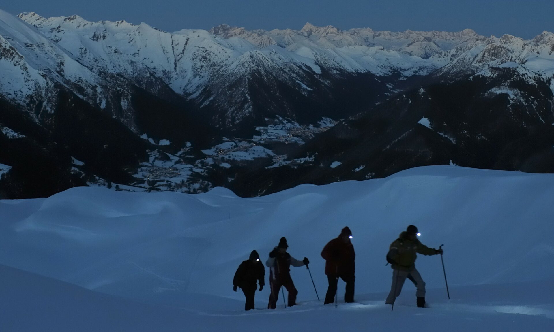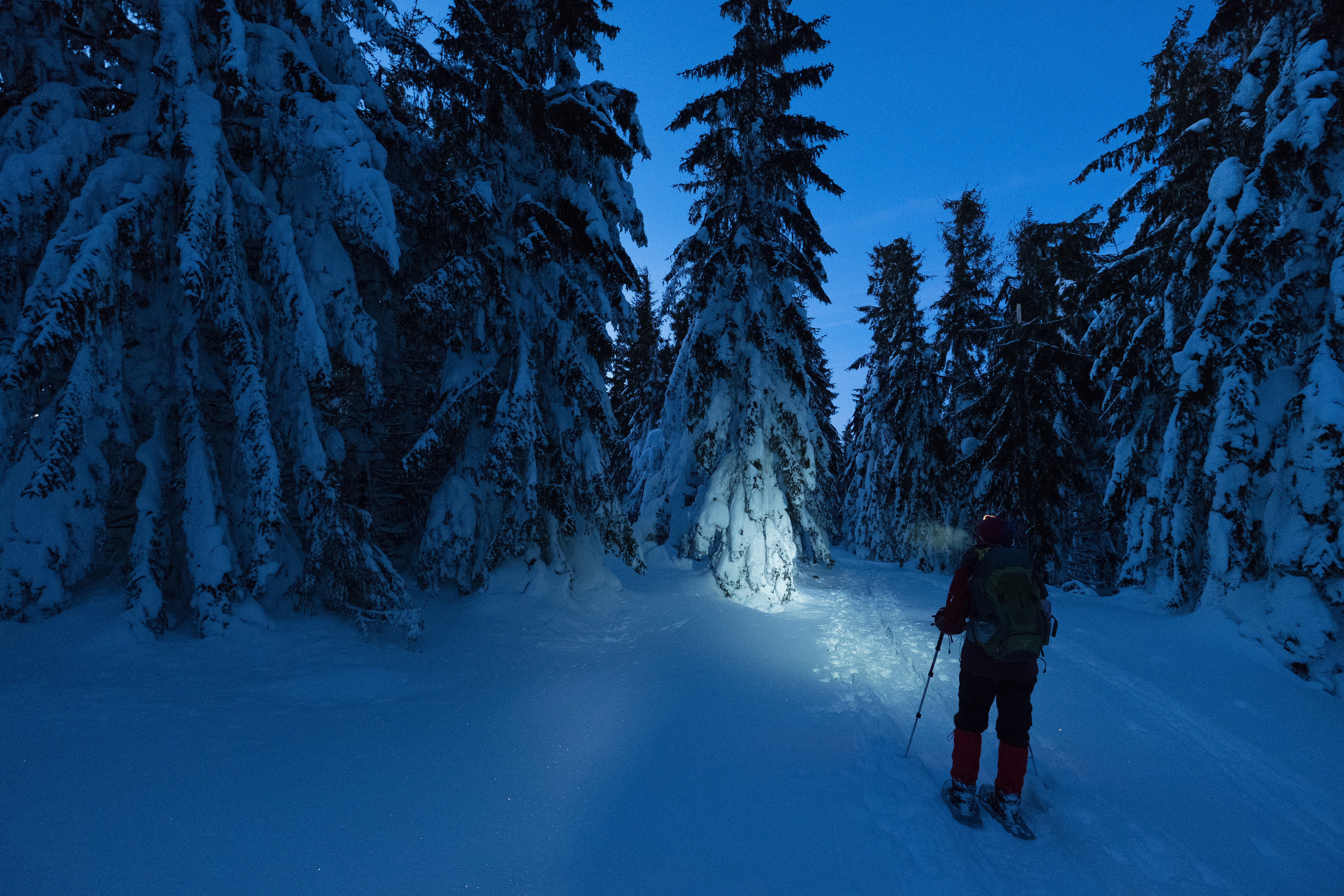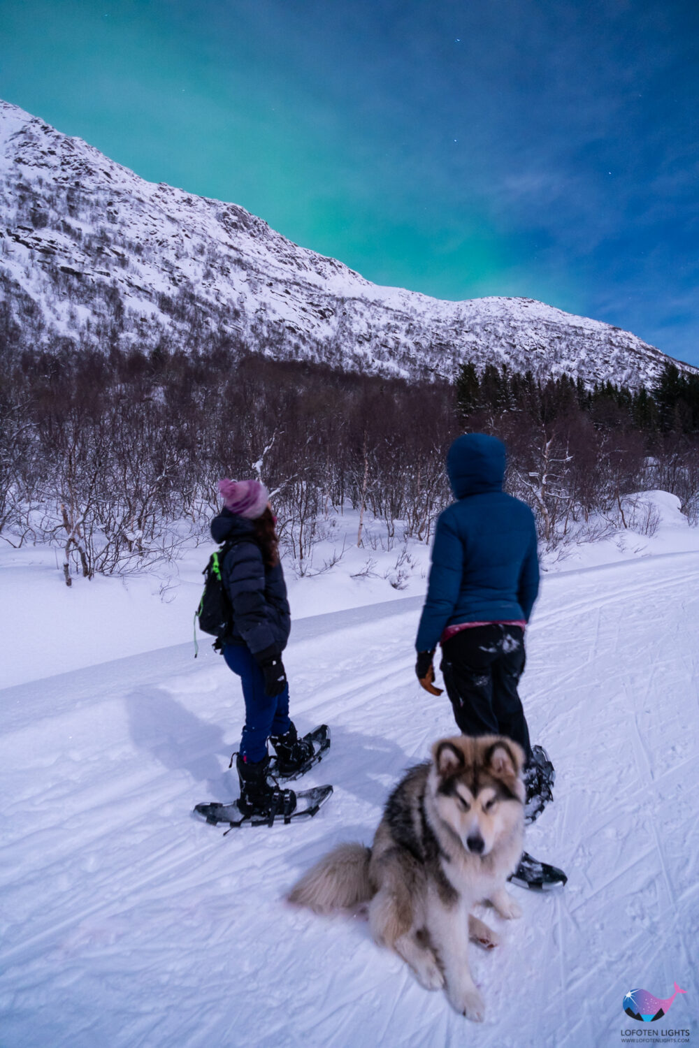 Pasear de noche con zapatos de nieve esperando la aurora boreal es una experiencia inolvidable